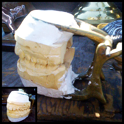 Overcome for a moment, order if you can, healing the urge to vomit:You’re looking at casts of someone’s teeth – full bicuspid-to-incisor replicas of a human’s business end, cast in peach-colored plaster, mounted on more white plaster that is set into a hinged contraption meant to approximate the original owner’s jaw.