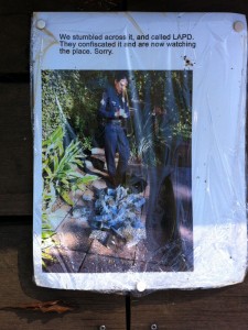 And I head back to work, wondering what will happen when the owner returns. I can only hope he/she’ll bug out, seeing nothing left for them here but LAPD scrutiny. And I keep running scenarios behind my eyes:
