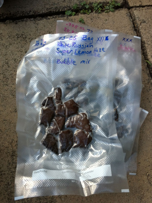 It smells strongly of marijuana – despite the fact that someone sealed it tightly into jars, Ziplocs and professionally vacuum-sealed pouches before THEY HID IT IN MY BACK YARD.